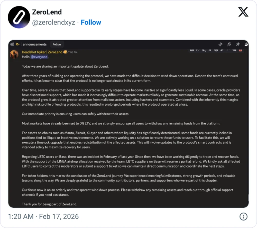 In a public statement shared on X (formerly Twitter) on Monday, ZeroLend’s founder, Ryker, articulated the gravity of the situation: "After three years of building and operating the protocol, we have made the difficult decision to wind down operations." He elaborated on the core challenges that ultimately led to the shutdown, stating, "Despite the team’s continued efforts, it has become clear that the protocol is no longer sustainable in its current form."